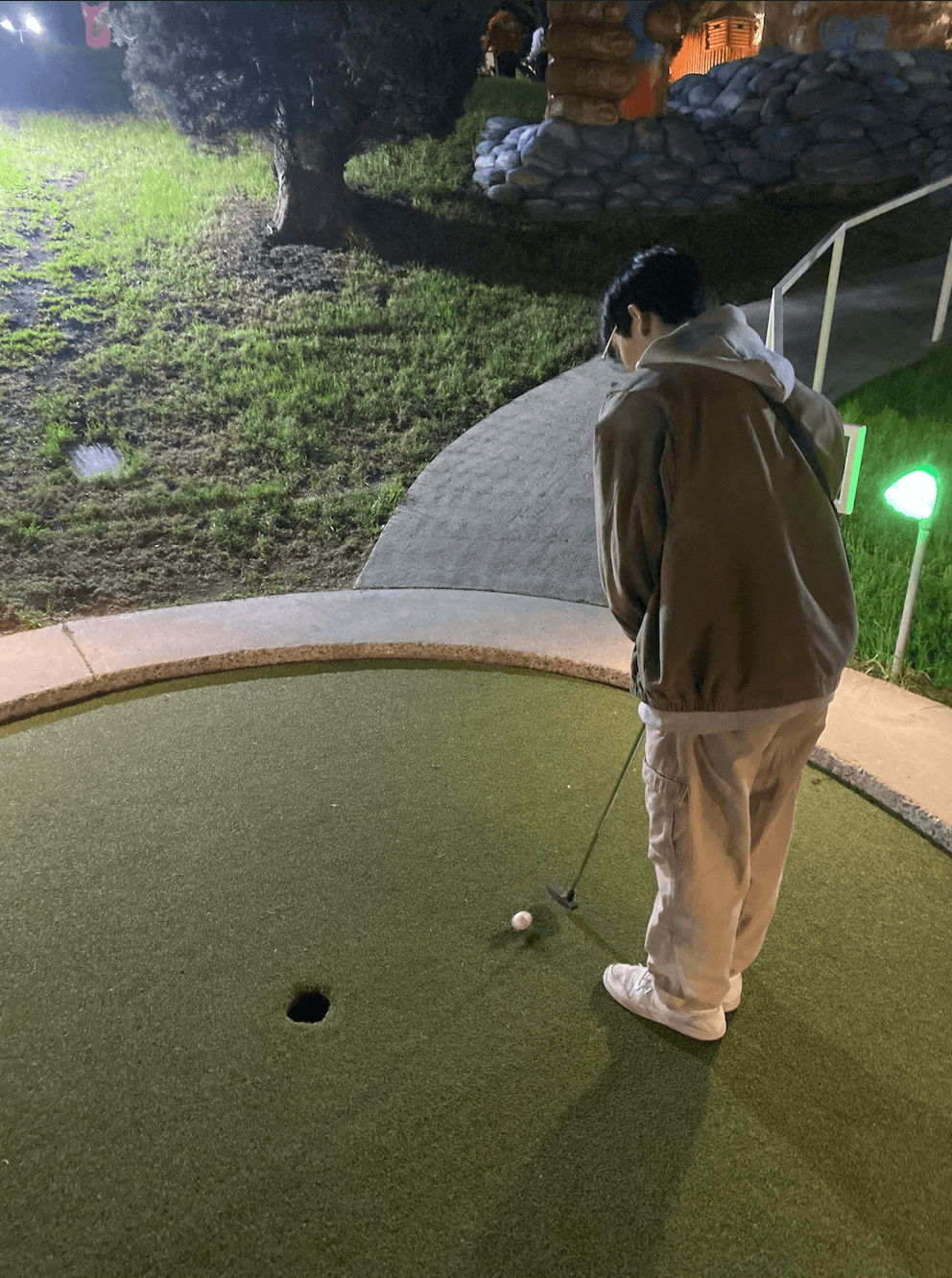 Going mini golfing with my friend.