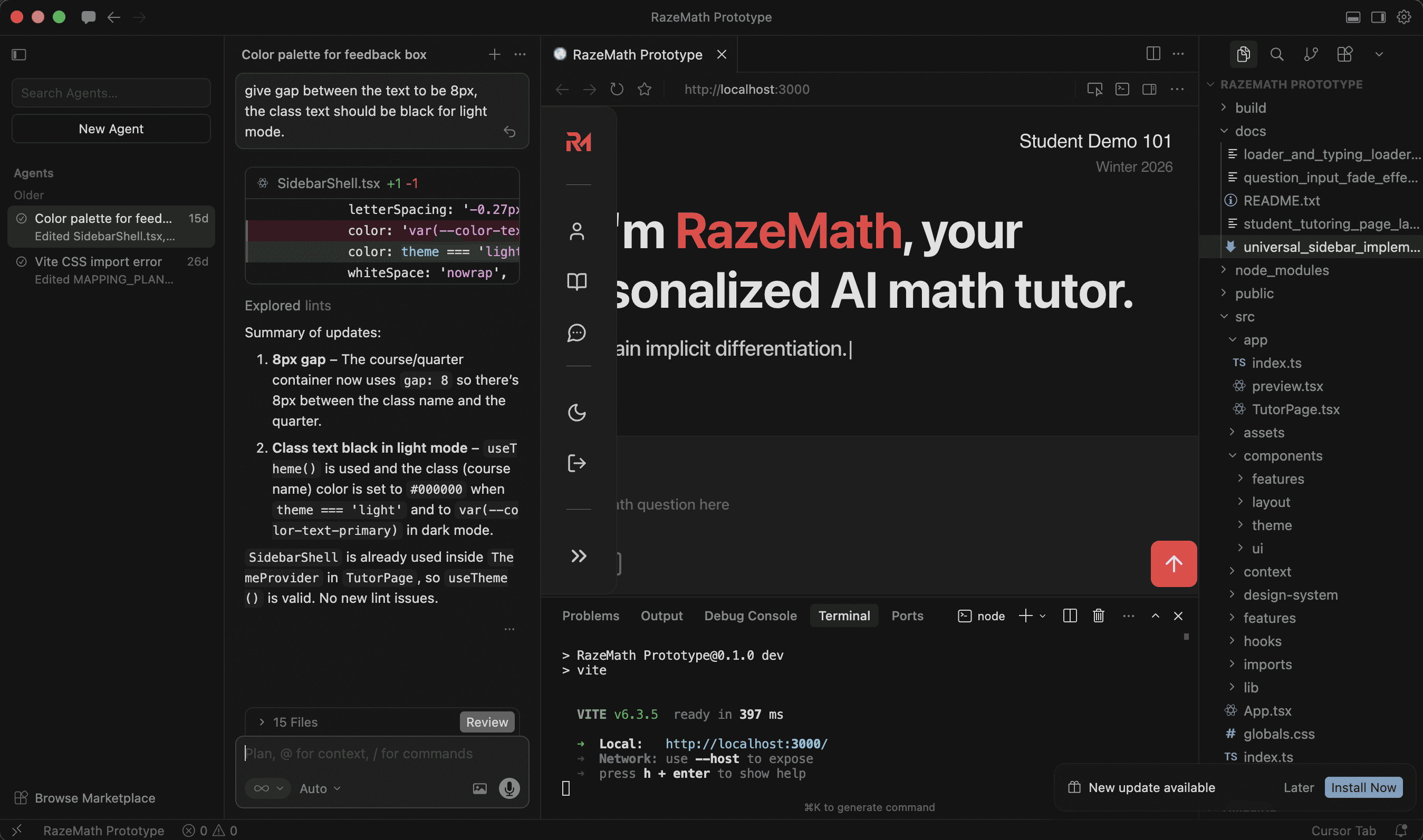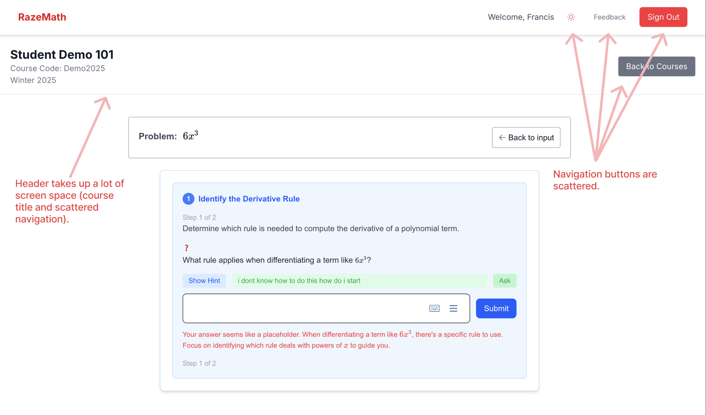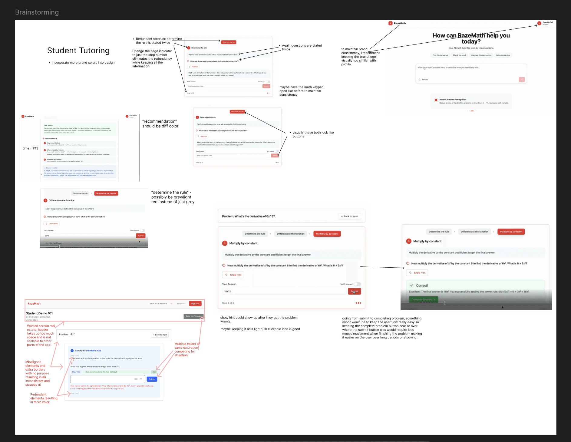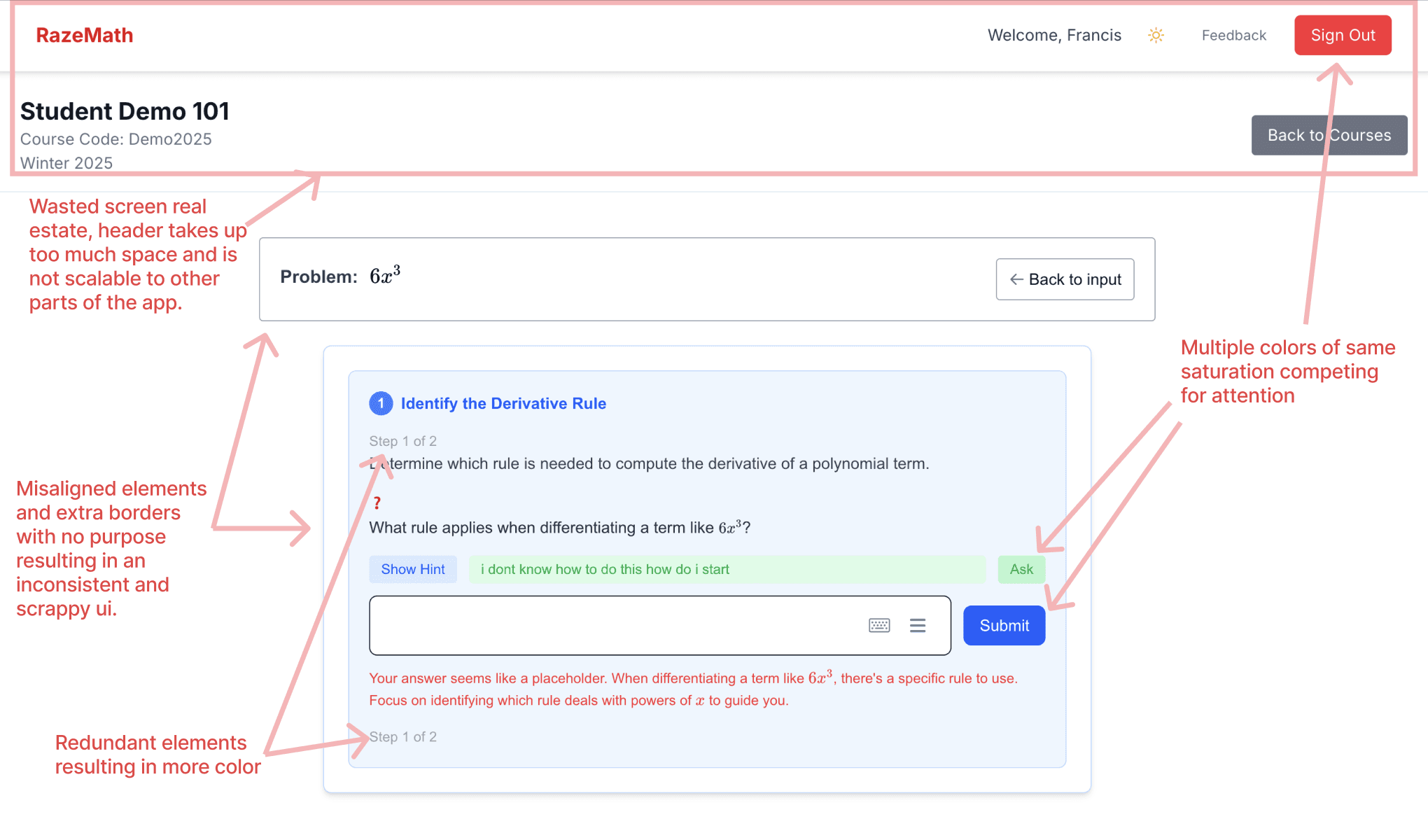 RazeMath sought to fix this problem through personalized AI tutoring. However their current UI was inconsistent, visually cluttered, not optimized for students, and conveyed zero brand identity.