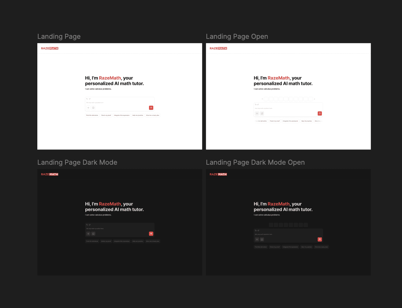To maximize the level of brand impression on the student, I created a math question input page. This lets the student get to work with the app, and learn about the brand and the value it could provide.